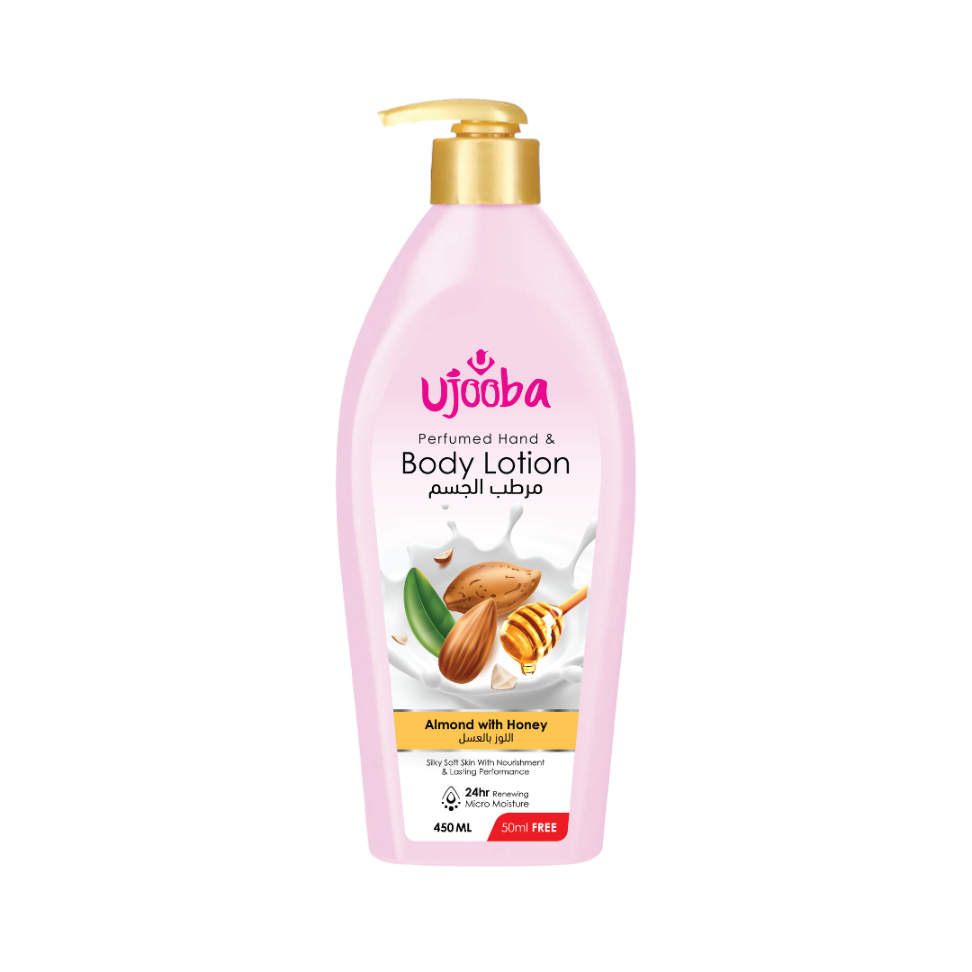 Indulge your skin with the nourishing power of Ujooba Perfumed Hand & Body Lotion, infused with the goodness of Almond and Honey. This luxurious lotion is specially crafted to provide deep hydration and silky smooth skin that lasts all day. The Almond extract nourishes and revitalizes your skin, while the honey adds a layer of moisture for a soft, glowing complexion. With 24-hour renewing micro-moisture technology, this lotion ensures lasting hydration for even the driest skin.