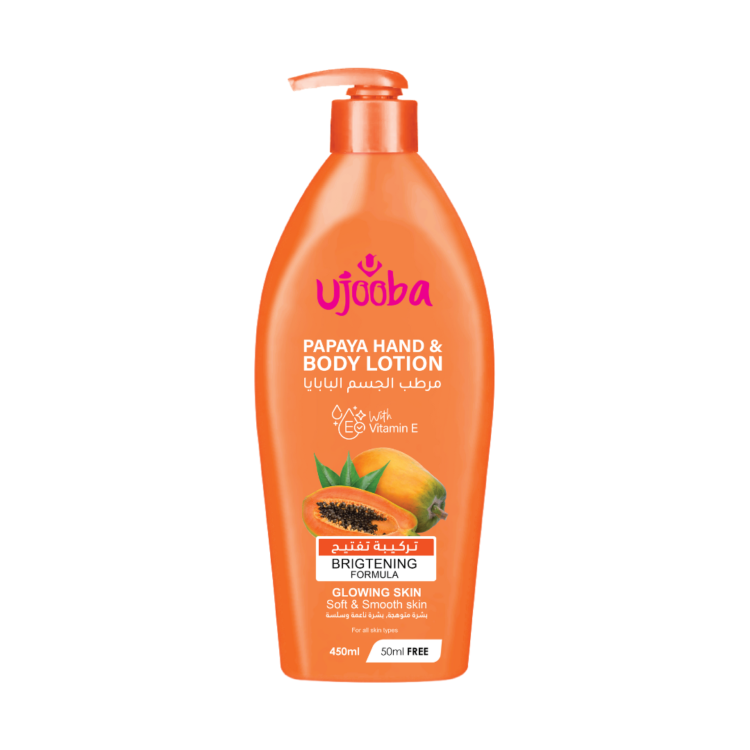 Experience the ultimate skincare indulgence with Ujooba Papaya Hand & Body Lotion, specially formulated to provide your skin with the care it deserves. Infused with the natural goodness of papaya and enriched with Vitamin E, this lotion deeply nourishes your skin, leaving it soft, smooth, and glowing.